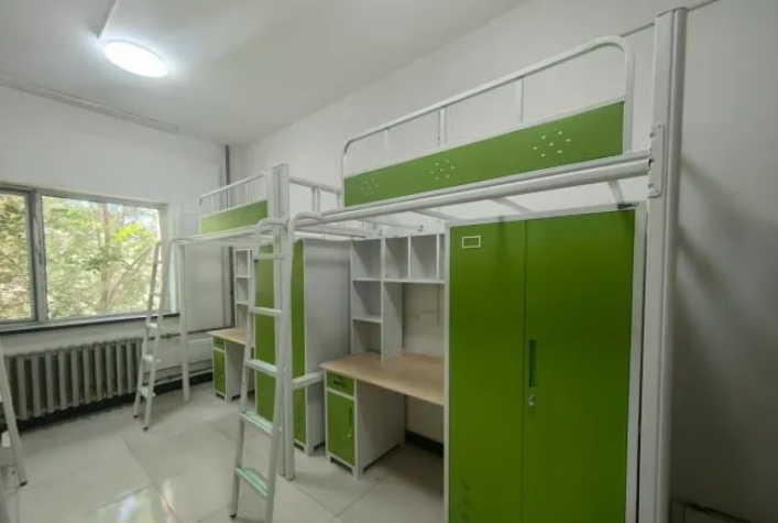 针对学生反映的原床铺空间局促、储物不足等问题,改造工程将宿舍的铁架床全部更换为定制化“上床下桌+储物柜”组合家具,不仅结实耐用,而且更加符合人体工程学设计,能够为学生提供更加舒适的睡眠环境。