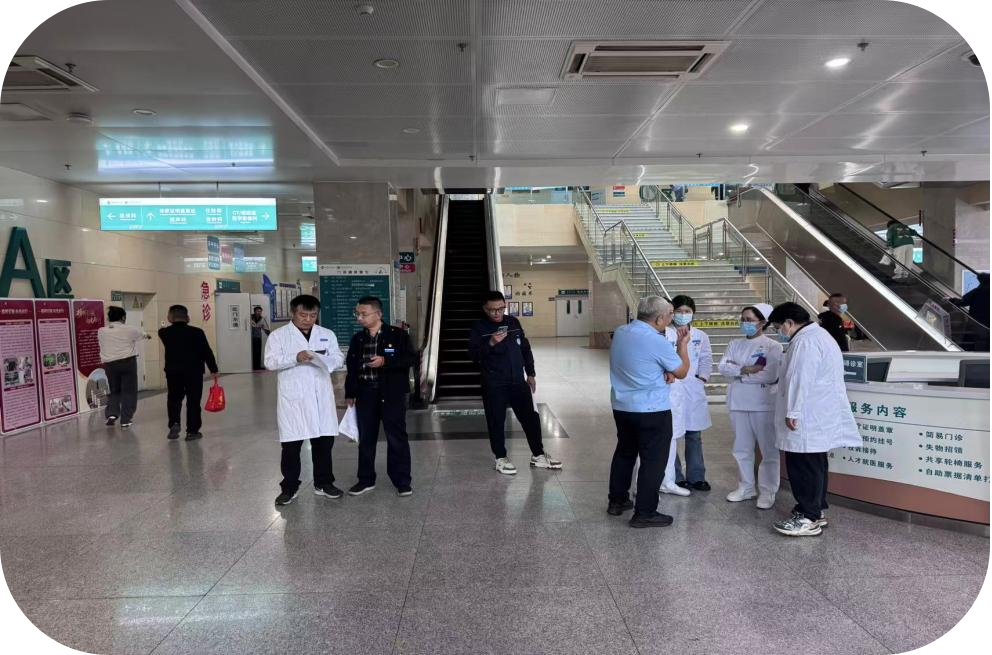 本次检查由质量管理部牵头,联合医务部、护理部、门诊部、医院感染管理部、后勤部、保卫部、药学部、医学工程科等多个职能科室共同参与。检查范围涵盖门诊所有公共区域、诊疗区域及办公区域,从一楼的便民设施到五楼的办公角落,检查组对急救设备状态、垃圾分类情况、电线排布安全等每一个细节,力求排查隐患,堵住漏洞,确保安全无死角。