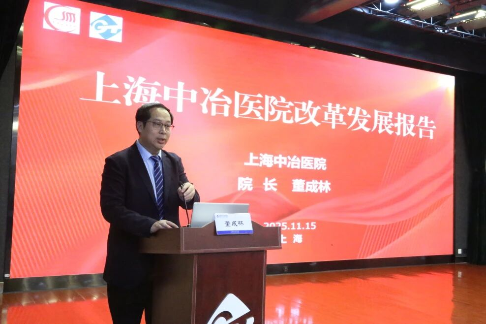 上海中冶院院长董成林作医院改革发展报告,围绕医院概况、改革发展历程、学科发展等方面展开详细阐述,同时指明医院下一阶段的前进方向,明确将秉持“强综合、优专科”路径,以特色学科为引领、人才与科技创新为驱动、优质服务与精益管理为基础,在各方支持下再创发展新佳绩。