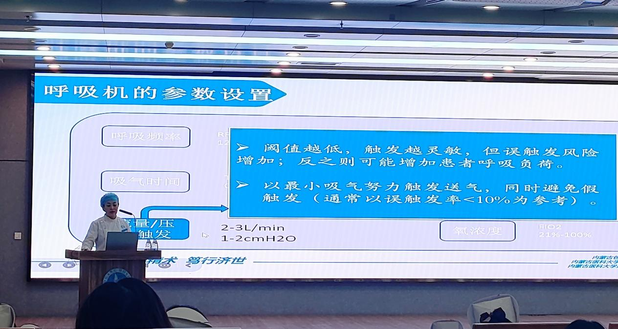 呼吸与危重症医学科MICU病区护士长祝文艳从呼吸机的基本原理与结构讲起,深入浅出地讲解了常用通气模式的选择、关键参数的个体化设置,并强调了呼吸机管路管理与预防性维护对患者安全的重要意义。课程还延伸至高级生命支持领域,介绍了体外膜肺氧合(ECMO)的基本原理及其在ICU的协同应用,为危重症患者的器官功能支持提供了前沿视角。