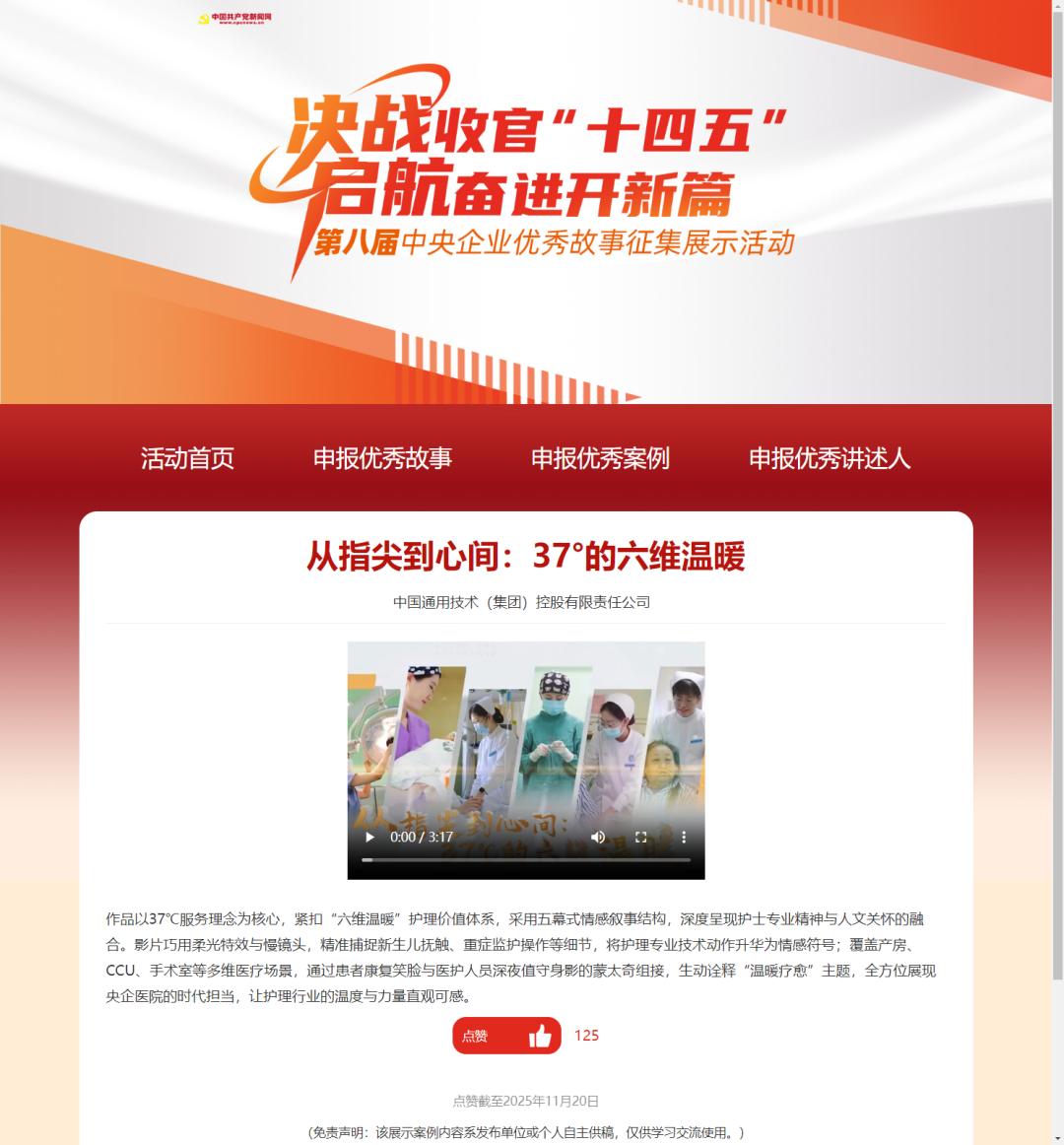 《从指尖到心间:37°的六维温暖》荣获第八届中央企业优秀故事三等奖。《医路六十五,医心谱华章 》作品荣获第十二届全国品牌故事大赛全国总决赛微电影比赛潜力级奖项。健康科普案例《血培养送检科普视频助力抗菌药物合理使用》荣获全国大赛一等奖。
