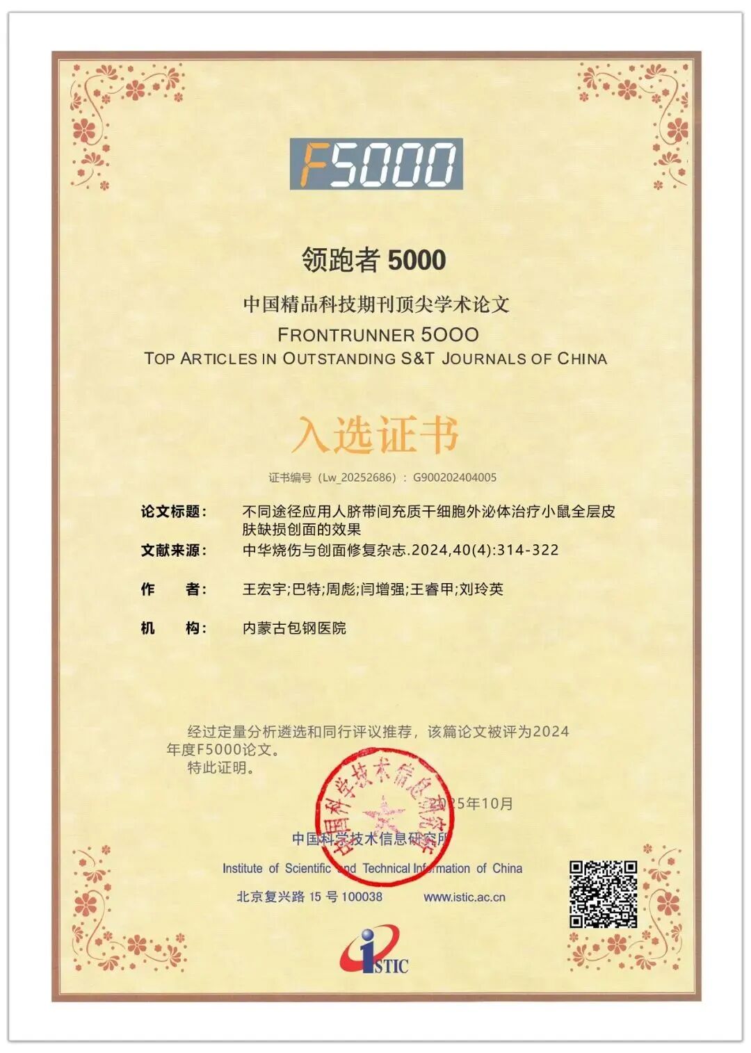 科室承担着包头市及周边地区成批烧伤、危重症烧伤救治工作,在重症烧伤救治领域创造了诸多生命奇迹。近十年成功抢救危重患者1200余人次,成功救治大面积烧伤患者,救治成功的烧伤病人最重烧伤面积100%三度90%。近十年抢救群体烧伤救治成功率100%。2025年,首次应用ECMO联合CRRT技术支持危重烧伤患者,再次填补了技术空白,创下区域救治新标杆。
