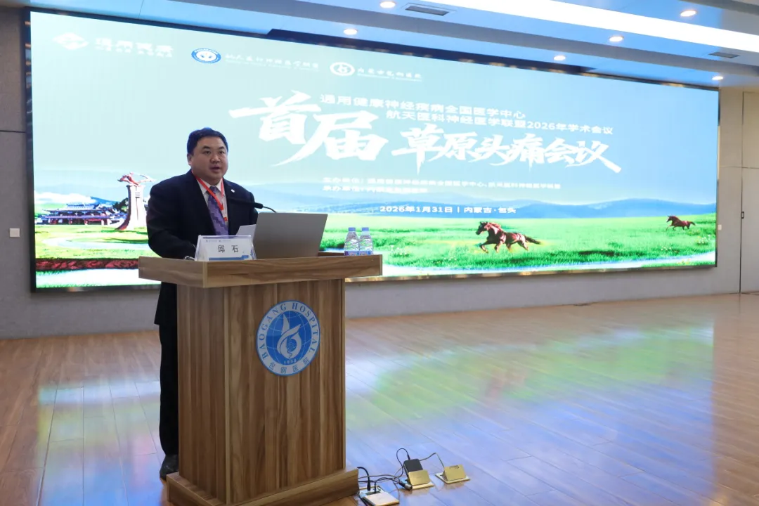 1月31日,通用健康神经疾病全国医学中心、航天医科神经医学联盟2026年学术会议暨首届草原头痛会议在内蒙古包钢医院门诊九楼学术报告厅召开。本次会议紧扣神经医学领域前沿趋势,聚焦神经内科头痛亚学科诊疗难点与突破点展开深度研讨,不仅吸引了自治区内外众多神经医学领域专家、学者亲临现场参会,更有大批行业同道通过线上平台同步参与,共同打造了一场兼具学术高度、实践价值与地域特色的医学交流盛宴。