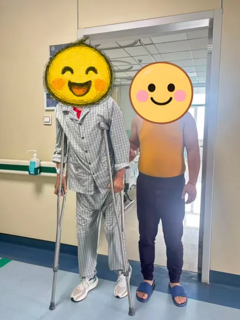 从卧床静养到平稳坐起,从扶床站立到借助双拐稳健迈步,袁先生一步步摆脱轮椅束缚,重新找回行走的能力。看着自己能够独立活动,袁先生及家属对医护团队连连致谢,重燃对生活的希望。