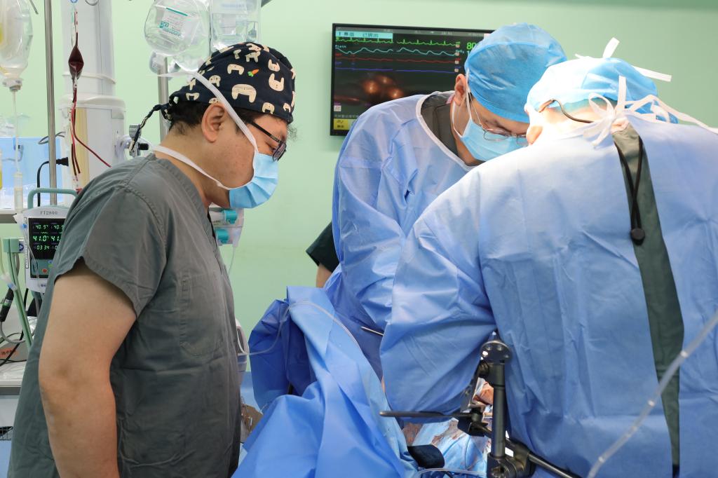 在医院的两个手术间,泌尿外科主任刘致中和副主任韩利忠分别带领两班人马开展肾移植手术,团队分工明确,高效协作。双线作战,展现移植团队“双倍速”的速度与激情。两天内完成的8例肾移植手术,让8位长期依赖透析的尿毒症患者重获新生。其中一位高龄尿毒症患者,合并多种基础疾病,伴有肾积水,手术风险较高,肾移植术前,刘致中主任先行腹腔镜手术,后再次开展移植手术。在保障8例肾移植的同时,近3天泌尿外科团队还完成了23台常规手术,充分彰显了泌尿外科团队的硬核实力。