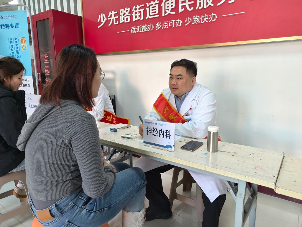 义诊现场,来自神经内科、老年医学科、心血管内科、内分泌科、妇产科、皮肤性病科、中医科及骨科医学部的专家团队耐心接诊,为前来咨询的老年人提供“一站式”诊疗服务。各位专家细致询问病史、认真进行体格检查,围绕高血压、糖尿病、骨质疏松、心脑血管疾病等老年常见病、慢性病,为每一位老人量身定制个体化的用药指导、饮食建议与康复方案。中医科专家现场施展推拿、针灸等中医适宜技术,帮助老人们缓解颈肩腰腿疼痛等不适,让居民在家门口即能享受到优质便捷的中医药服务。