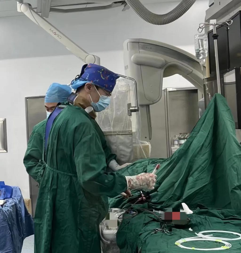 10 月 29 日,手术在导管室展开。医护团队于双侧股动脉各做 0.5cm 微小切口,在局部麻醉下置入动脉鞘管,造影清晰显示:右侧副肾动脉位置低于左侧,瘤颈短且右侧髂动脉瘤样扩张明显,左侧髂动脉还存在斑块 —— 这些结构特点增加了支架定位的难度。凭借丰富的临床经验,团队从右侧股动脉精准植入分叉型覆膜支架,沿右侧副肾动脉下缘释放近端;再通过左侧股动脉超选分支,送入分支支架覆盖左侧髂总动脉……再次造影确认:支架位置精准,无内漏、无渗血,双侧足背动脉搏动良好。整场手术仅出血 30ml,耗时 2 小时余,患者全程生命体征平稳,术后安返病房。目前老人精神饮食恢复良好,已能在床上自主活动。