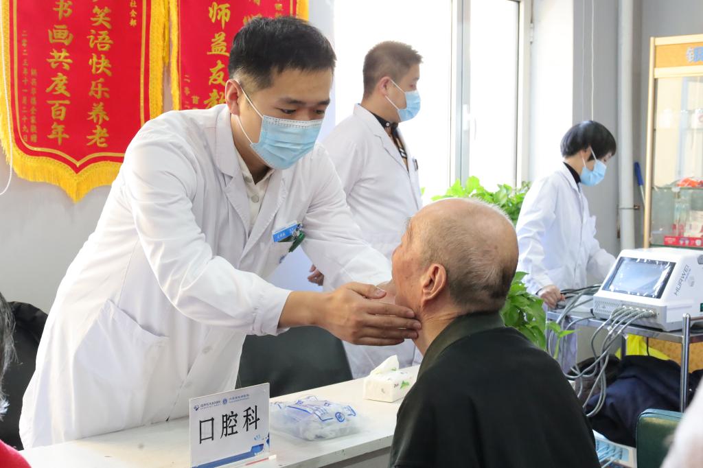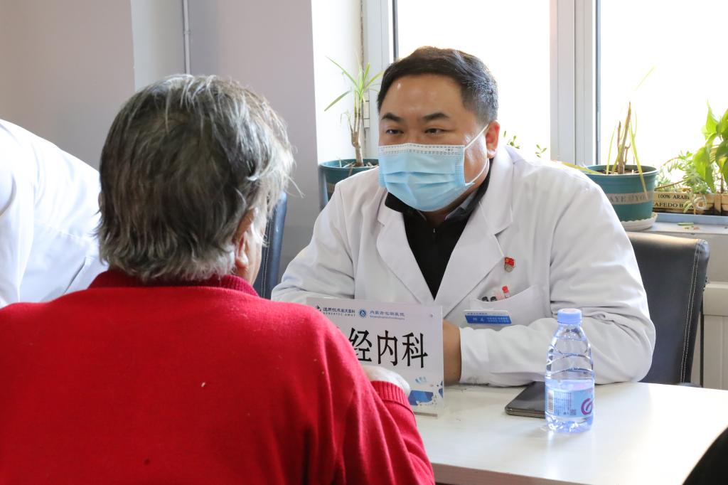 义诊现场,来自内蒙古包钢康复医院、神经内科、老年医学科、康复医学科、口腔科、航天健康医学中心等科室的专家们耐心细致地为老人们测量血压、血糖,进行心肺听诊、口腔问题等基础检查。针对老年人常见的高血压、糖尿病、心脑血管疾病等问题,专家们不仅提供专业的诊疗建议,还耐心讲解日常保健知识。对于行动不便的卧床老人,专家们更是走进房间进行床边检查,确保每一位老人都能得到贴心的医疗服务。为老年人解答各类健康问题,并根据检查结果给予个性化的健康指导,并依据个体情况提供有针对性的健康建议。