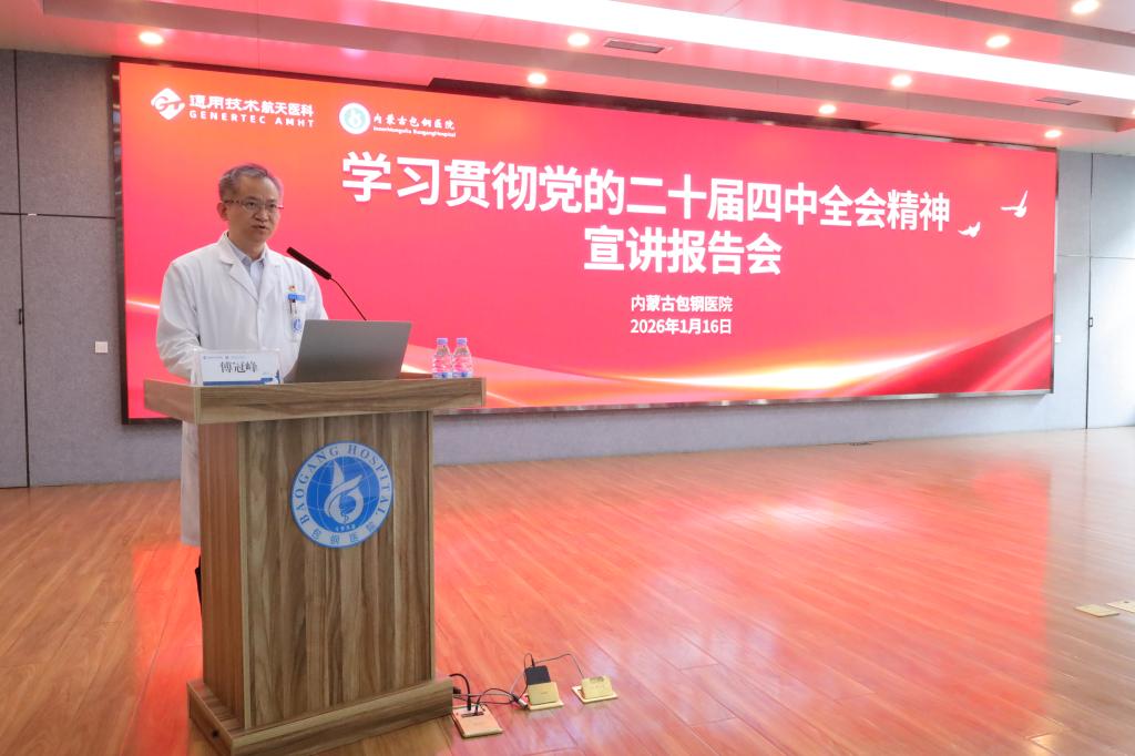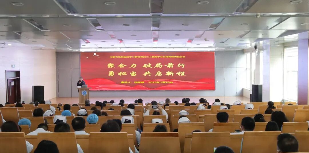 为深入学习宣传贯彻党的二十届四中全会精神,根据航天医科党委统一部署,1月16日下午,航天医科党委委员、副总经理杨姝雅在内蒙古包钢医院开展党的二十届四中全会精神专题宣讲。医院领导班子成员、党支部书记、科主任、护士长及党员代表、职工代表、青年代表参加会议。