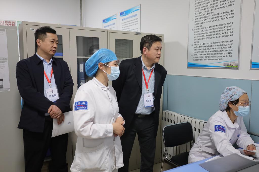 在听取汇报后,专家组移步至急诊医学科破伤风门诊,展开实地验收。他们严格对照评审标准,对门诊的诊疗分区、急救设备配置、信息化病历系统、标准化操作流程、医护人员资质与培训等环节进行核查,并与一线医护人员进行深入交流,现场“把脉”诊疗实践中的各个环节。